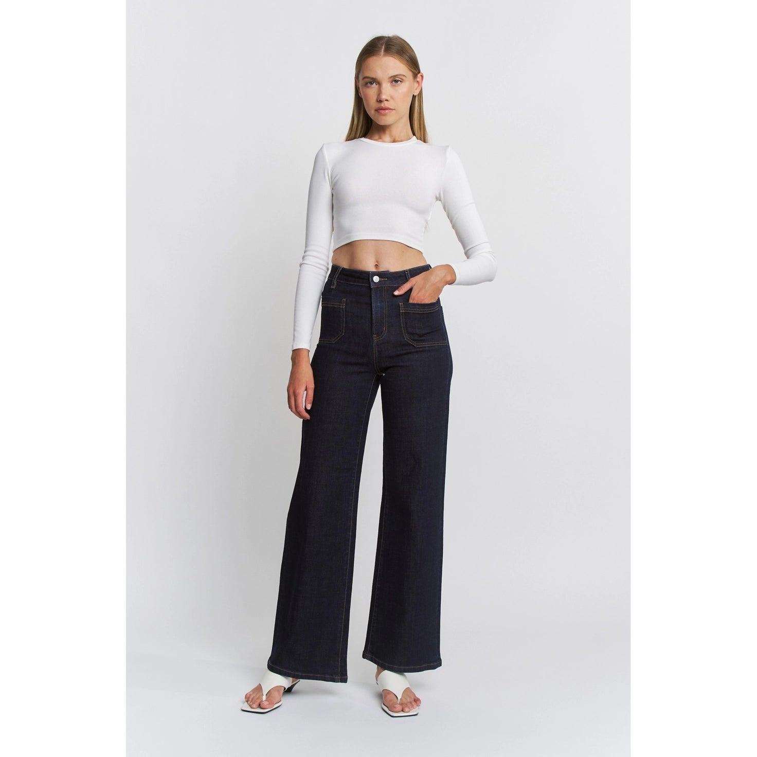 Step into effortless style with the Galaxy Wide Leg Jeans—your new go-to for that perfect balance of cool and cozy. Crafted in a rich dark wash that pairs with literally everything, these jeans feature a roomy wide-leg silhouette that lets you move freely without sacrificing that polished look. The comfort fit means you can actually breathe, sit down, and live your best life. Whether you're running errands or making a statement, these jeans deliver the relaxed vibe you've been craving with just enough edge to keep things interesting.