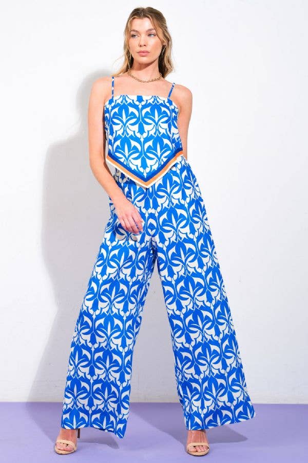 Experience the pinnacle of chic with the Pamela Blue Set. Both a statement piece and a wardrobe essential, this set features a beautifully printed woven top and pant set that boasts a straight neckline for a refined and sophisticated look. Elevate your style and make a lasting impression with this luxurious and exclusive set.