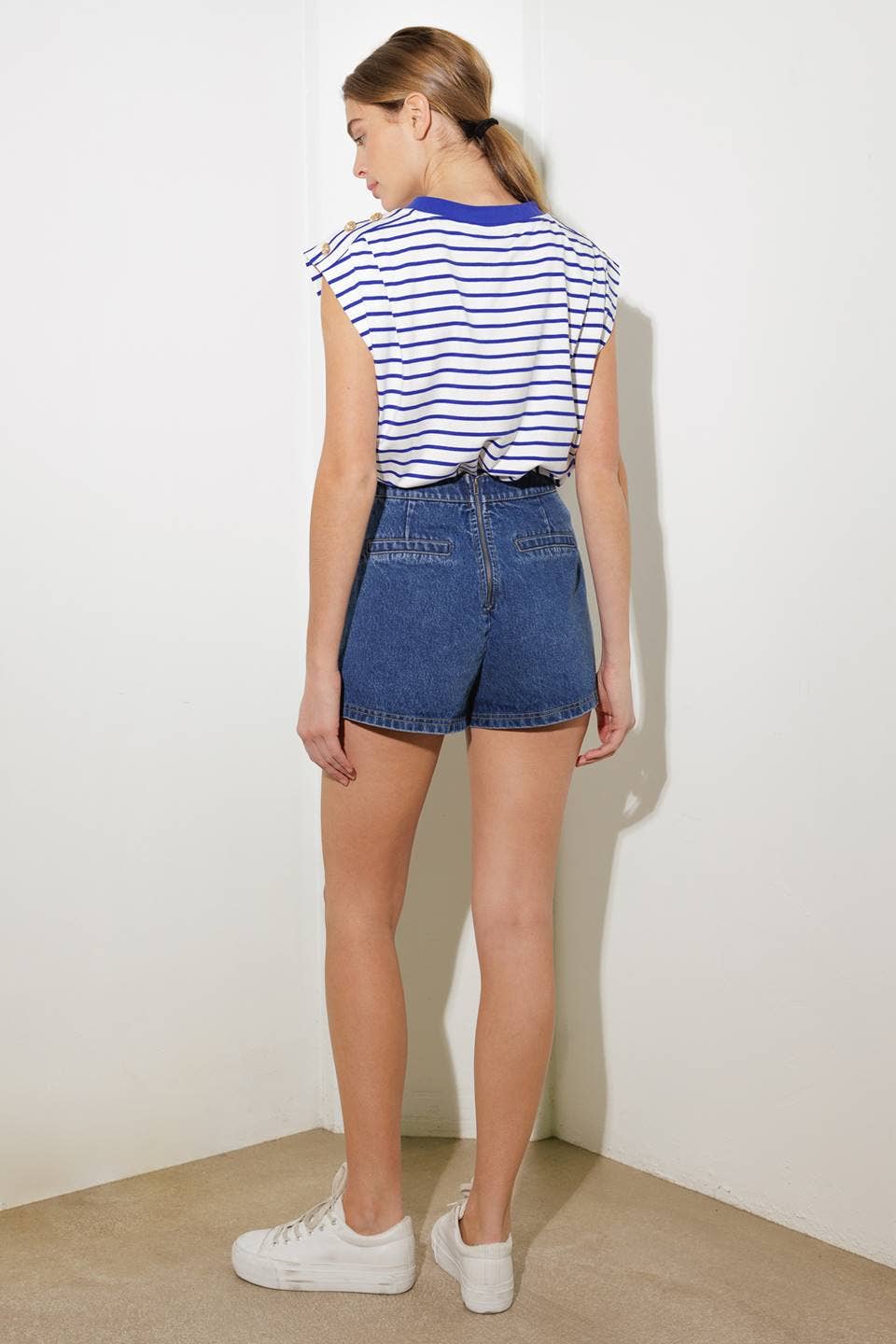 Effortlessly transition from day to night with this signature piece. The sophisticated washed denim fabric pairs perfectly with the functional side pockets and back zipper closure, making it a versatile and timeless addition to your wardrobe. Elevate any occasion and indulge in the luxurious comfort of the Ophelia Skort.