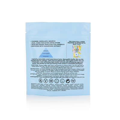 Our mini Buffer Bits in Cotton Candy are a sweet extension of our skin-nourishing PediPOP! Buffers. This adorable, dual-sided buffer is the perfect size for precise deep-cleansing and softening of cuticles, nails, and small dry patches. It features special soft cleansing on one side and gentle textured exfoliation on the other. Infused with skin-softening triple butter and exfoliating sugarcane extract, you'll indulge in delicate notes of sweet pomegranate, cherry blossom, and sugar musk, enveloping you in a soft and silky aroma of spun sugar. Fragrance Notes Top: Pomegranate Middle: Cherry Blossom Base: Sugar Musk
