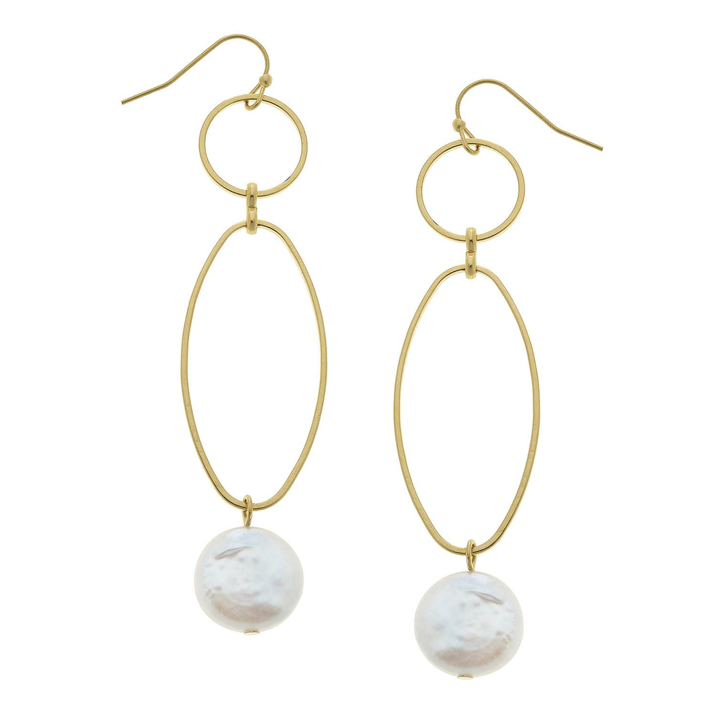 SS Gold Round and Oval with Genuine Freshwater Coin Pearl Earrings